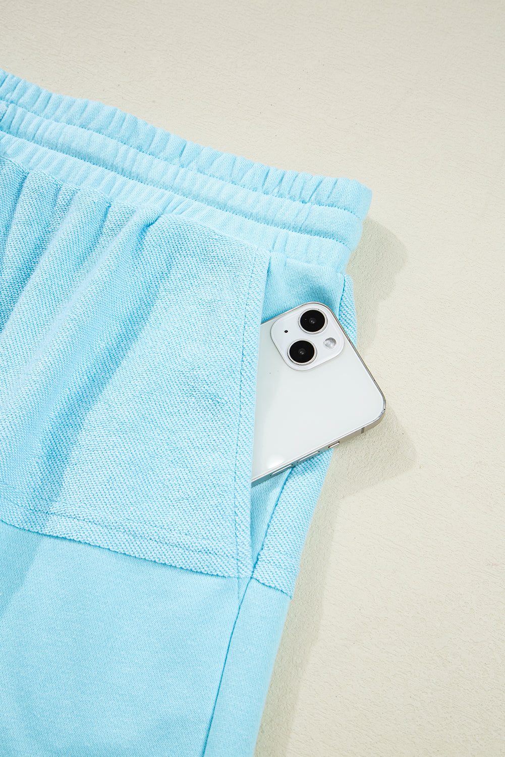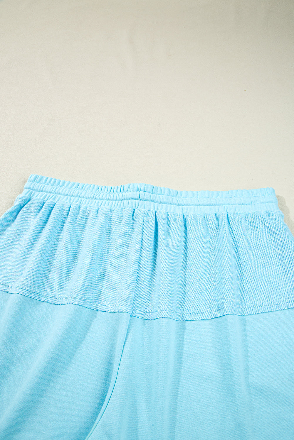 Dive into effortless style with The Lyra—a vibrant two-piece set that's all about comfort and color. This playful pullover top in gorgeous Aruba blue pairs perfectly with raw hem shorts for that laid-back, trendy vibe. Designed with plus-size fit in mind, it celebrates curves while keeping things casual and cool. Whether you're lounging at home or grabbing coffee with friends, this set delivers easy-wearing confidence with a pop of color that makes you feel good.