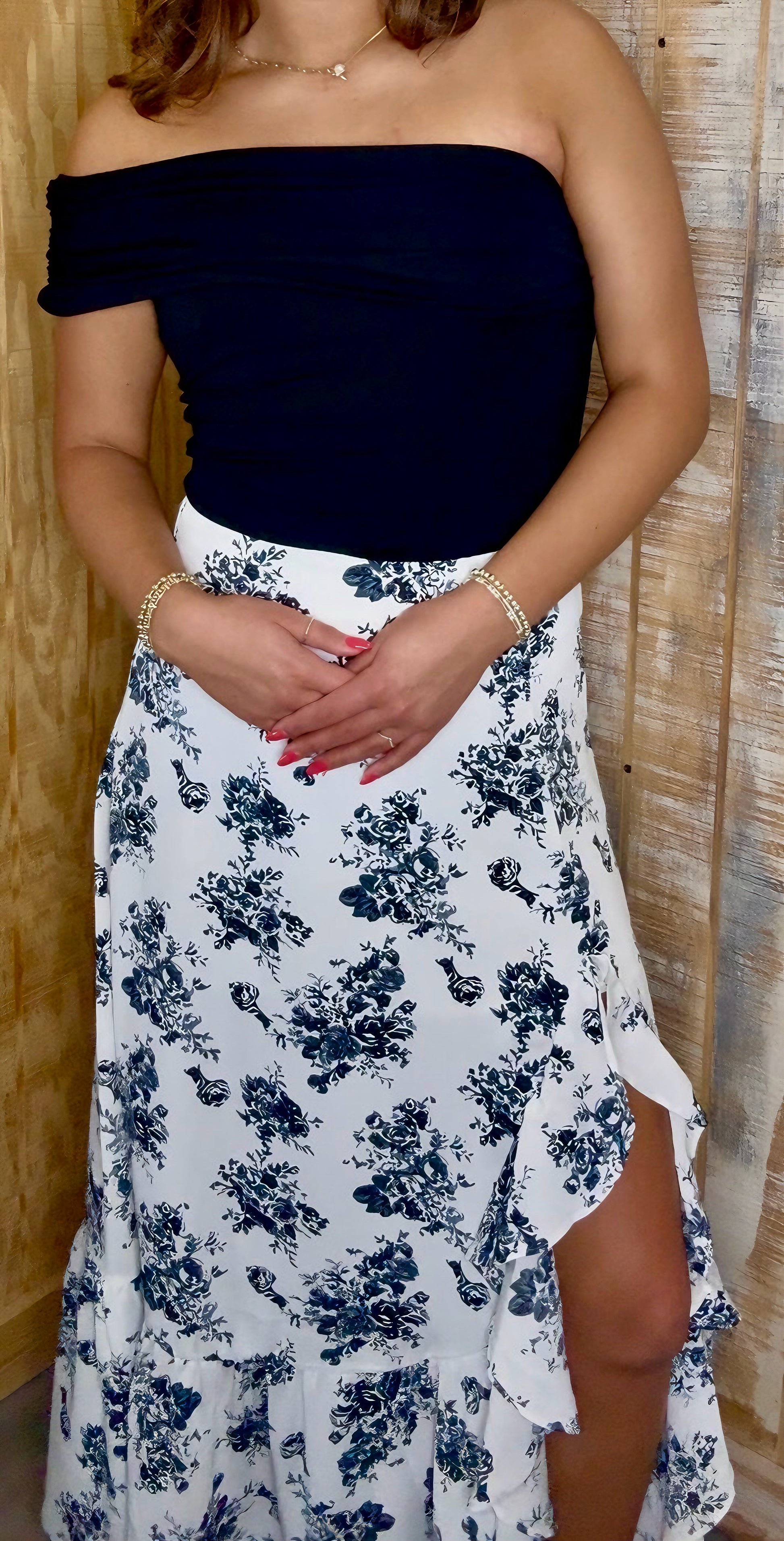 The McKenna is a playful black boho floral maxi skirt that brings effortless charm to your wardrobe. Featuring a high waist for a flattering fit, delicate ruffles, and a flirty split, itβs perfect for twirling through sunny days or dancing into the night. Embrace your free spirit with this breezy, feminine favorite!