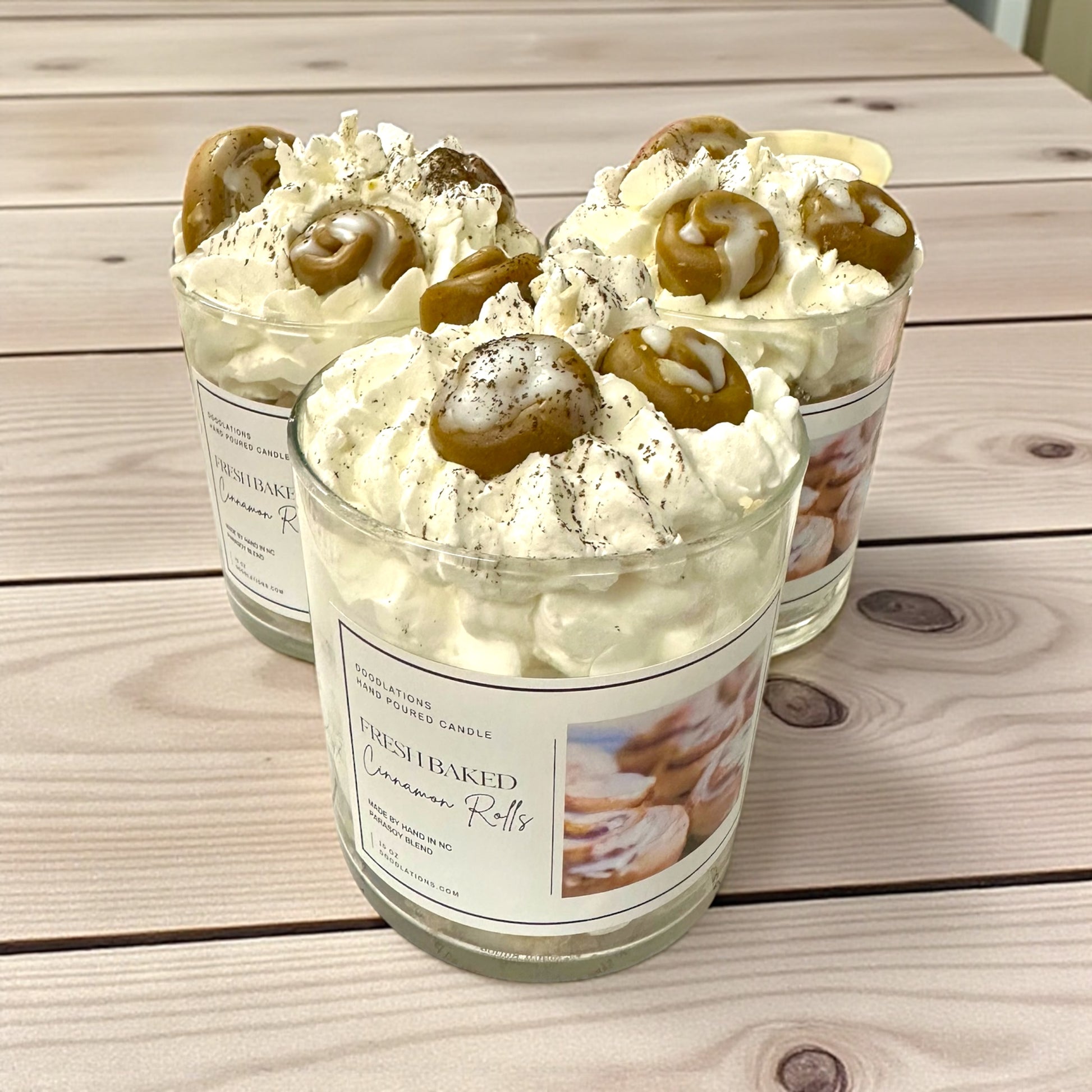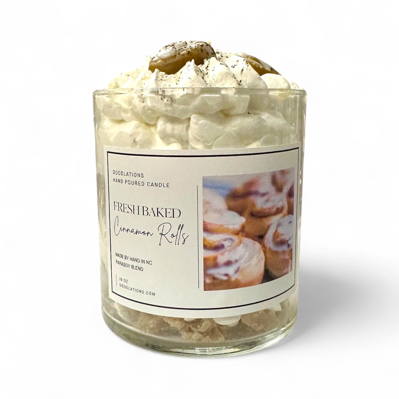 Indulge your senses with our Cinnamon Bun Candle, handpoured by us with care. This 8-ounce single wick candle features a cute wax topping that looks like cinnamon buns and whipped cream. It fills your space with the cozy, sweet scent of fresh cinnamon buns, perfect for adding a warm and playful touch to any room. Light it up and enjoy a deliciously inviting atmosphere!