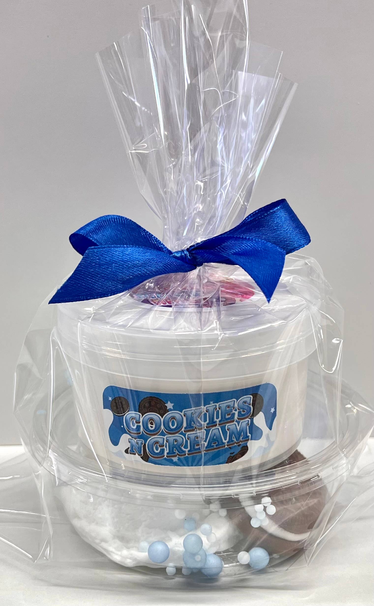 Delicious and iconic Cookies ‘n Cream scent in a super thick and glossy base with a cute scoop of “ice cream” a clay cookie and extra brown clay. Turns into an inflating and super soft slay slime. Charms will be included depending on availability of supplies. 6oz. slime with add-ins will inflate, please use enclosed deli container to store surplus.