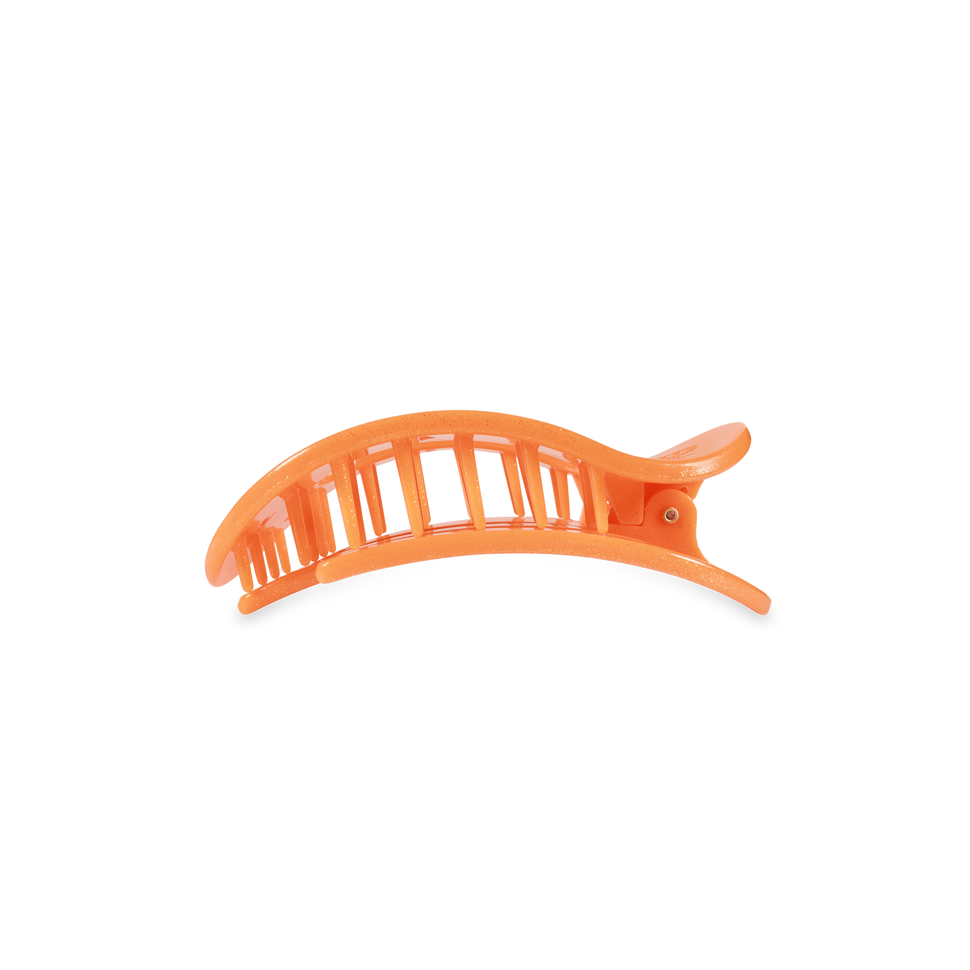 Lay flat and relax with the new TELETIES Showbiz Small Flat Round Hair Clip in Orange. This hair clip is designed to allow you to lay back flat, do yoga, or sit comfortably in a seat with a headrest, and it is made with the same material that is nearly unbreakable.