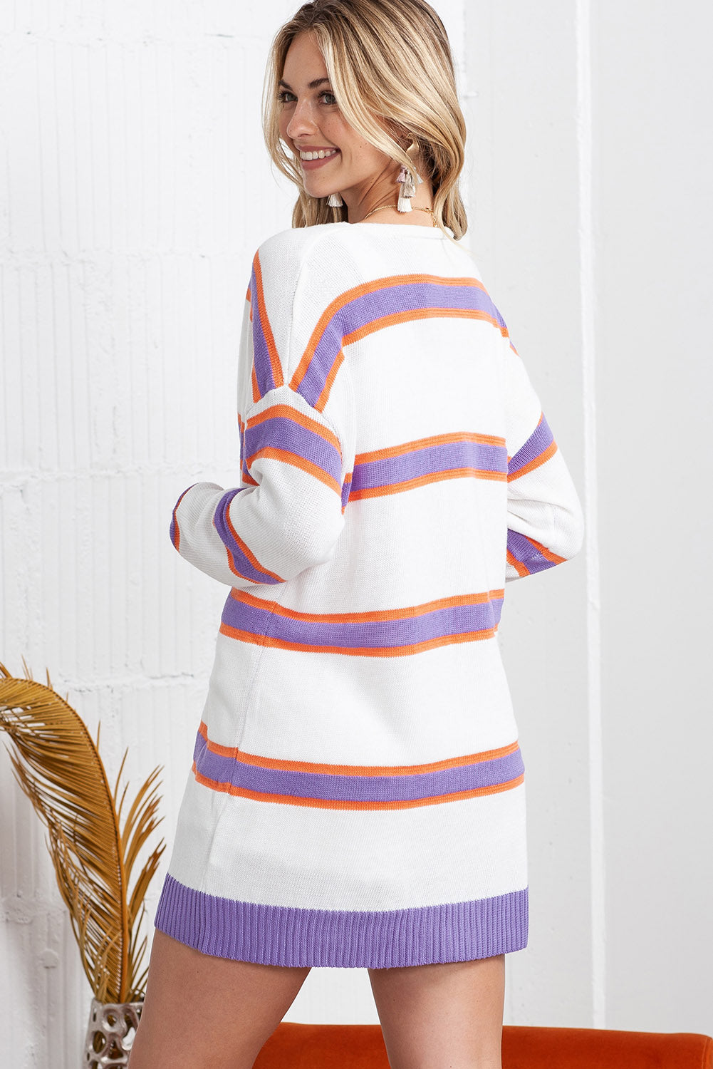 The Bonnie is your new go-to cardigan for adding cozy charm to any outfit. Featuring soft beige stripes and ribbed trim, this long sleeve button-up wraps you in gentle warmth with a playful twist. Perfect for layering on breezy days or elevating casual looks, it promises comfort and style with every wear.