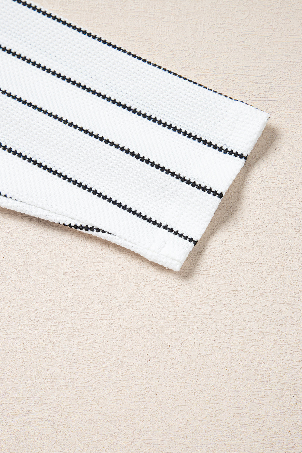 Brighten up your wardrobe with The Valentina, a playful twist on the classic waffle knit top. Featuring a sleek black stripe and a flattering V-neck, this long-sleeve essential combines cozy texture with a dash of chic. Perfect for layering or wearing solo, it adds effortless style to any casual day.