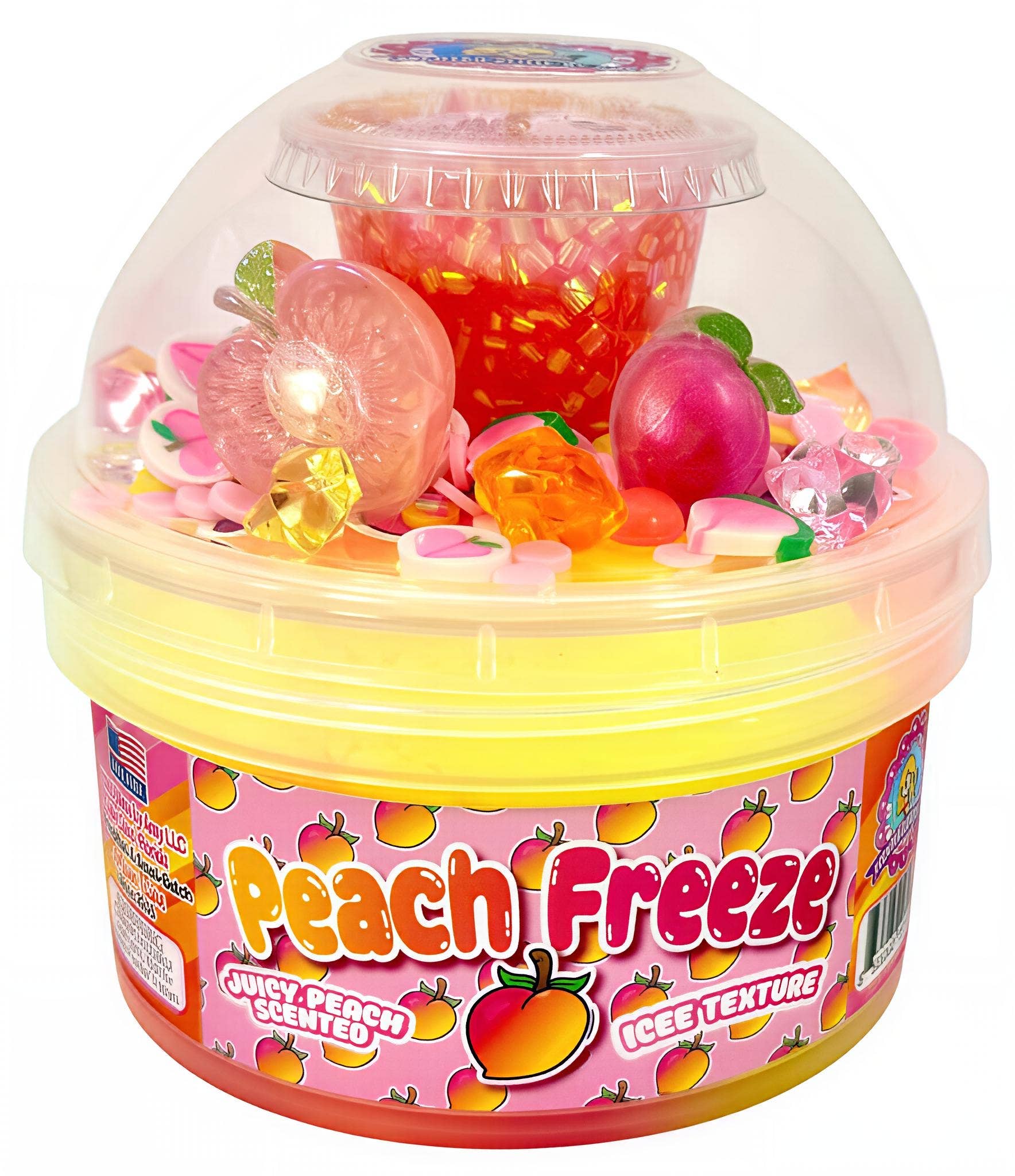 Peach Freeze is a vibrant, sizzly Icee slime that captures the juicy sweetness of a perfectly ripe peach! Swirled in bold neon shades of pink, orange, and yellow, this eye-catching slime is bursting with fruity fun. The refreshing texture offers a soft, icy crunch with every squish, and it's scented just like fresh, juicy peaches picked at their peak. Each jar comes loaded with adorable peach charms and colorful sprinkles to match the bright, zesty vibe…it's the ultimate slime treat! 🍑✨