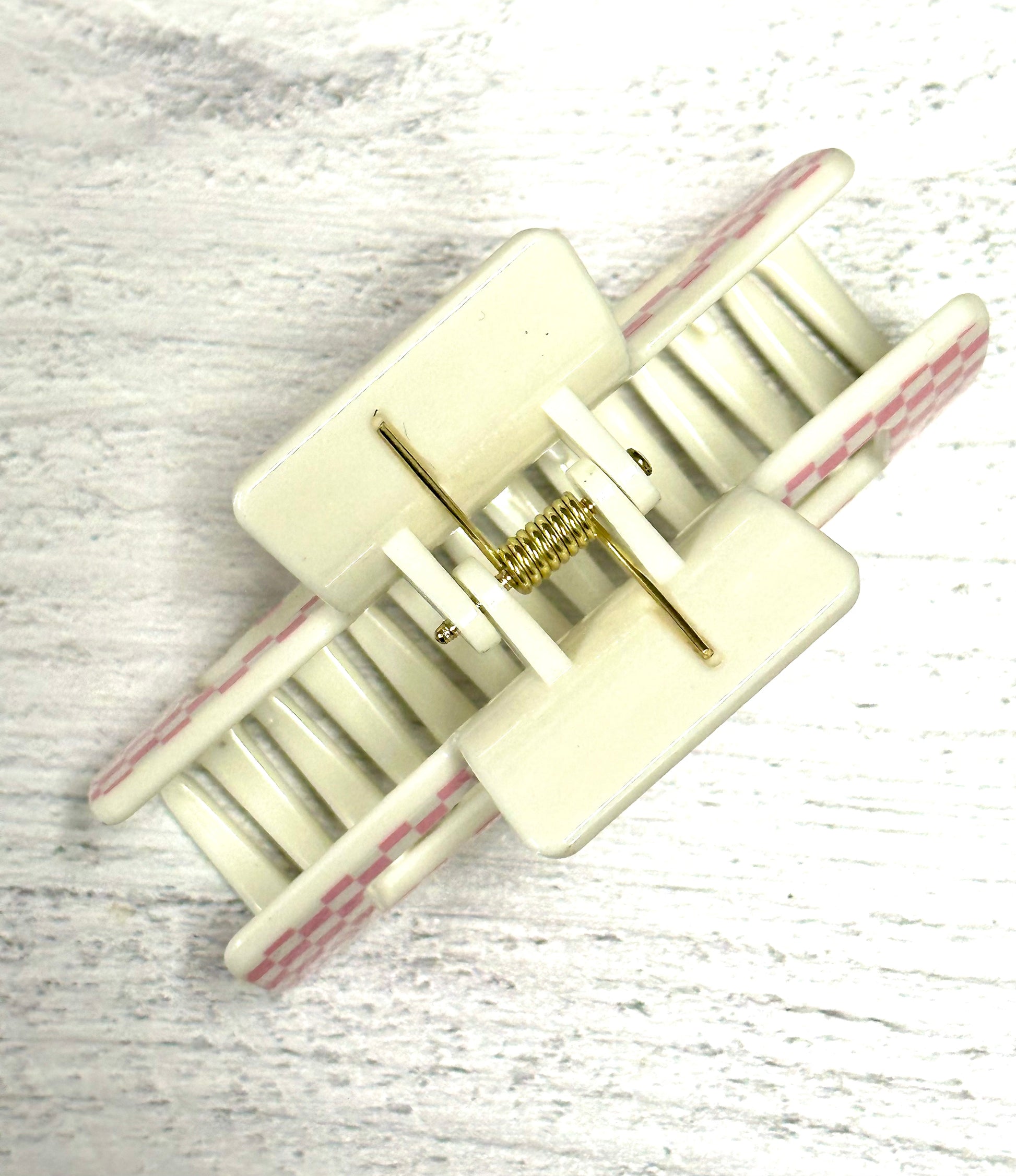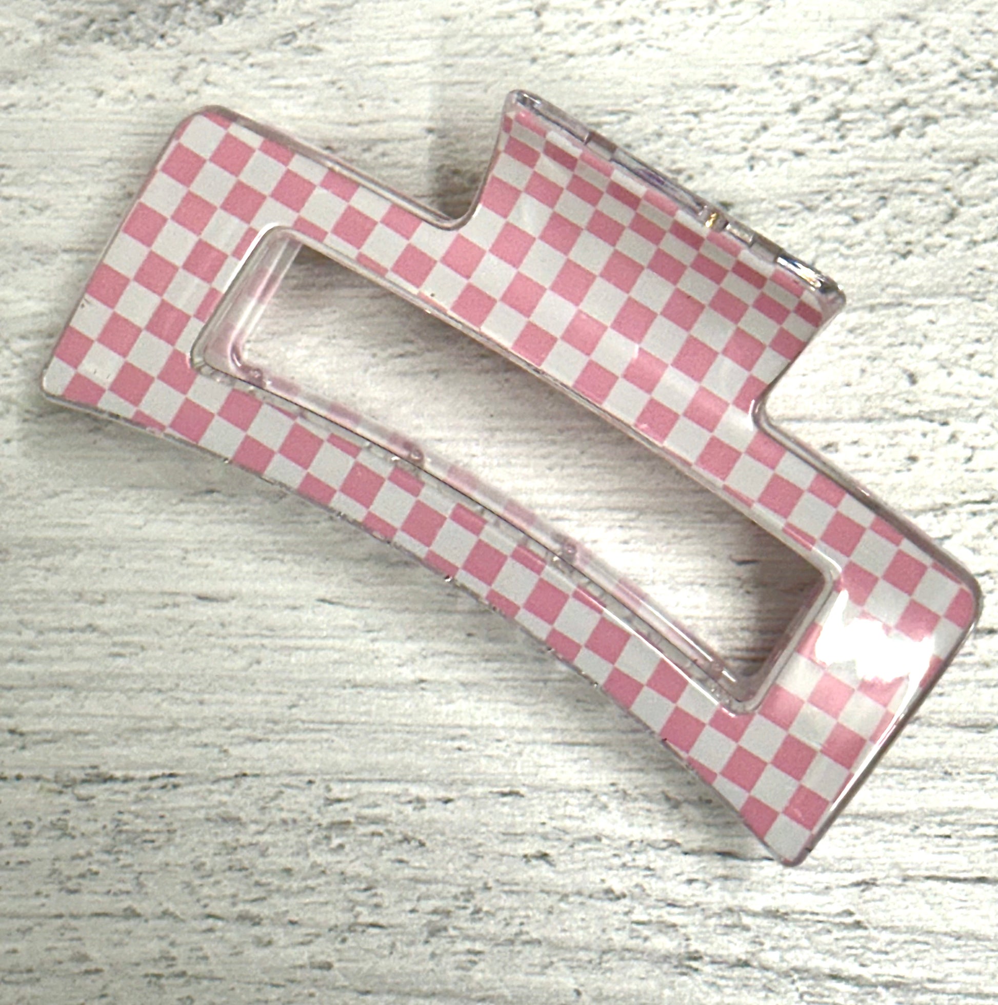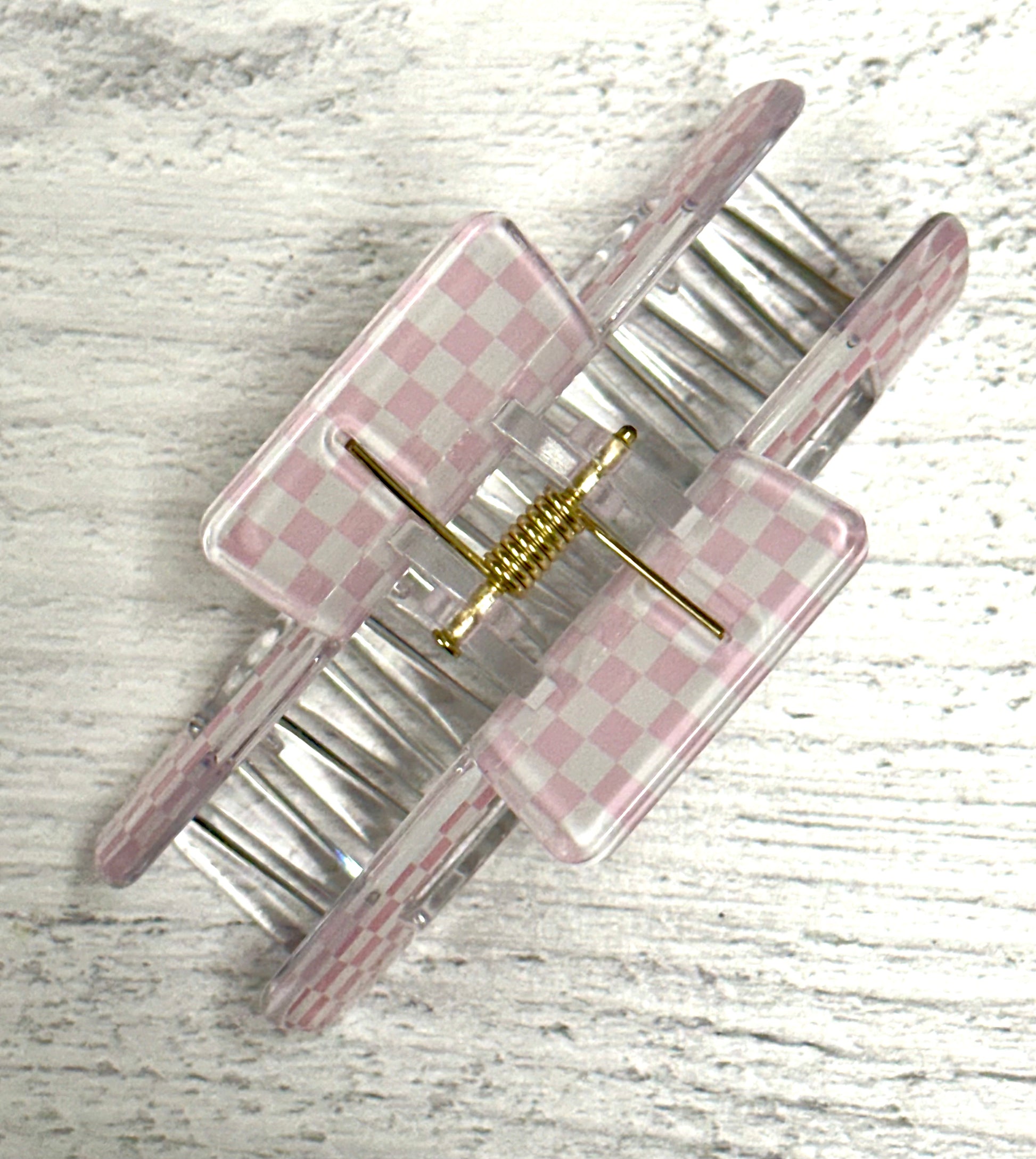 Brighten up your hairstyle with these playful Pink Checkered Hair Clips! Featuring a glossy pink and white checkerboard design, these simple yet sweet claw clips add a fun touch to your street style or daily look. Perfect for keeping your hair effortlessly chic and in place all day long.