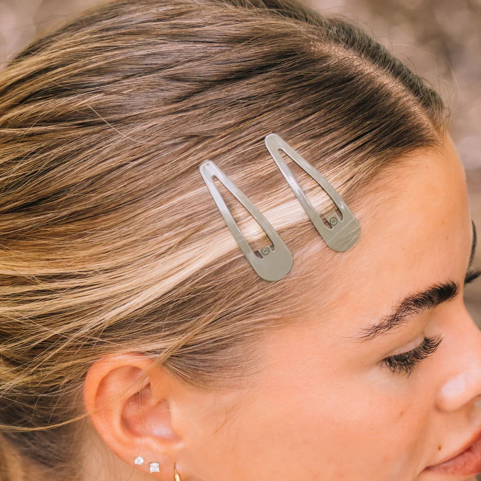 TELETIES Sage It Ain't So Snap Clips (6Ct) in Sage Green offer a secure seamless tip for a no snag feel. Perfect for all hair types, these stylish barrettes provide a gentle yet firm hold, whether you're styling or simply pulling back strands. Available in a range of colors, TELETIES Snap Clips combine functionality with flair, ensuring your hair stays put all day long.
