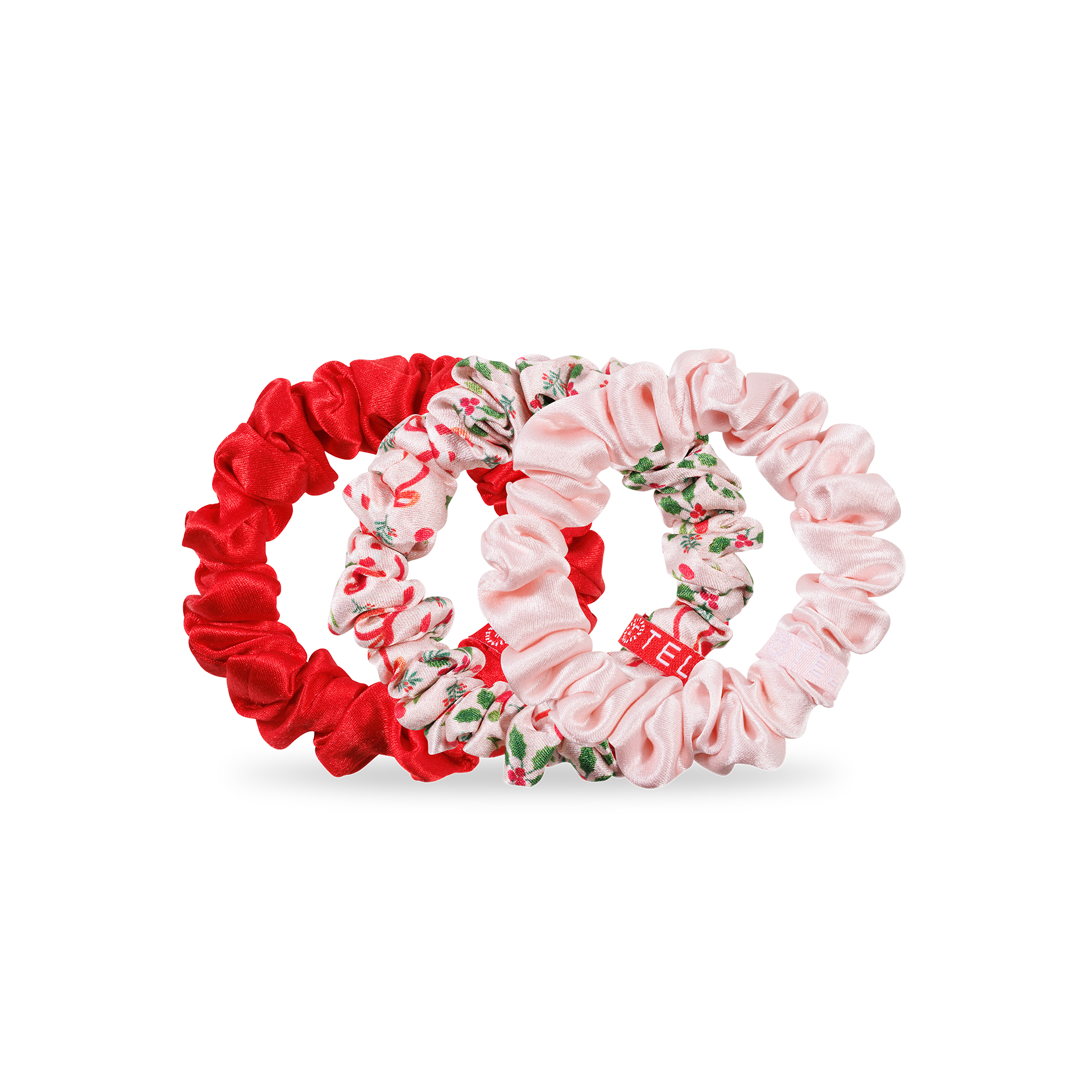 Take care of your bedtime hair and hold your hair in place with ease and softness! Blushmas Small Silk Scrunchies in Pink and Red offer a secure grip without slipping—thanks to the innovative inner coil—wrapped in soft, natural silk.