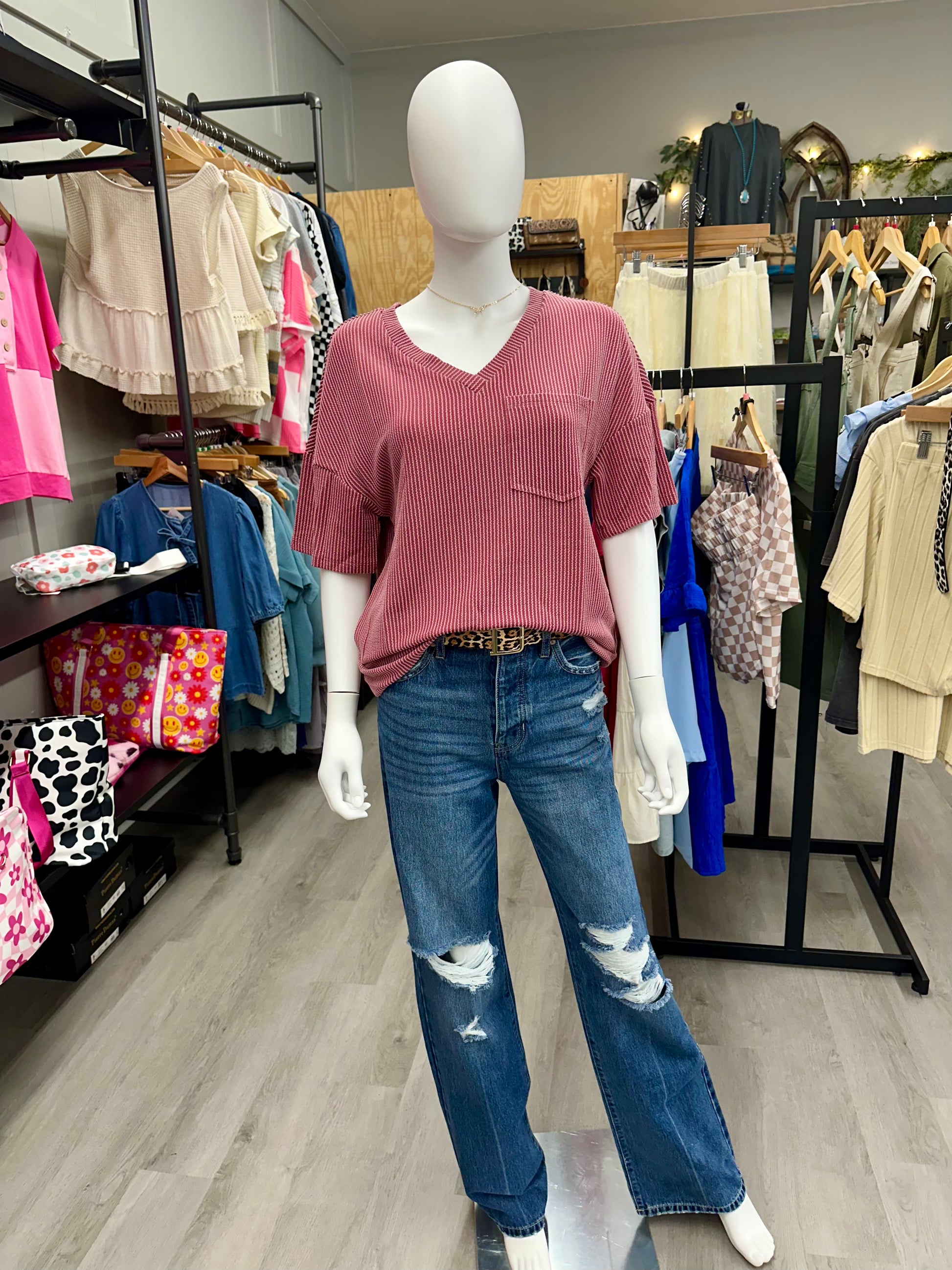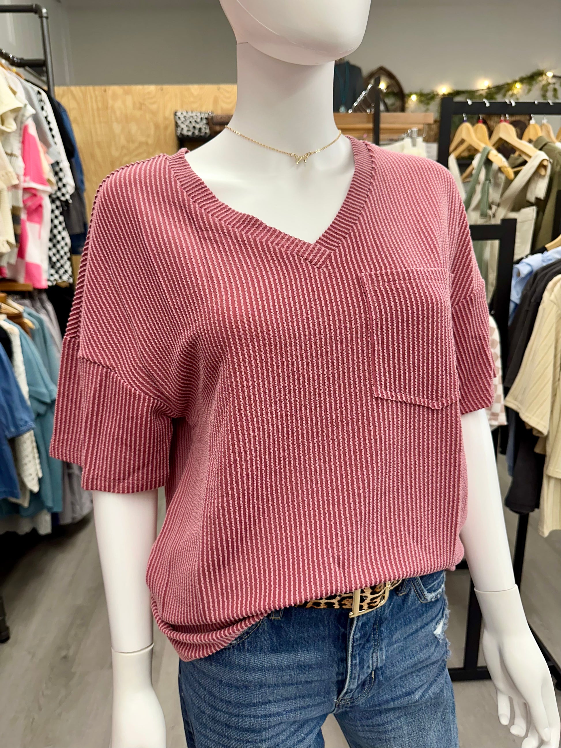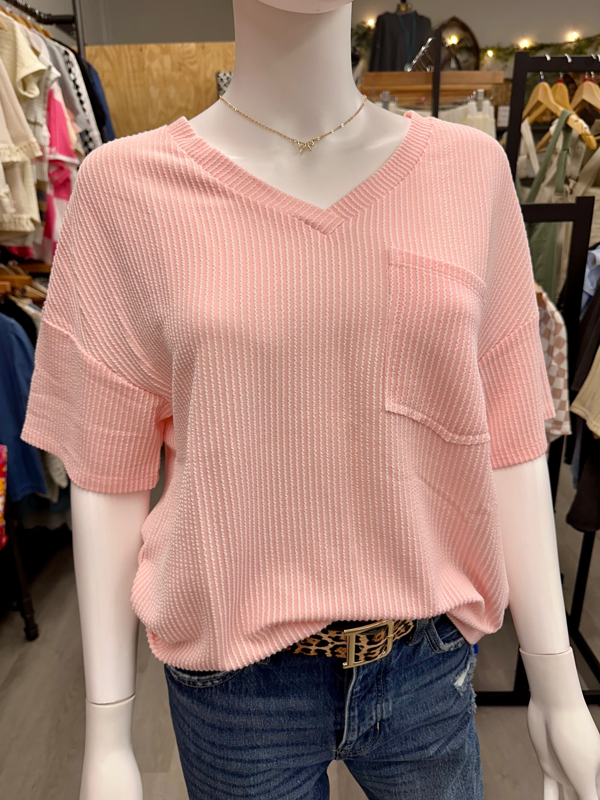 Introducing The Ashley! Our Spring/Summer Women's Oversized Twisted Threaded Short-Sleeved T-Shirt, perfect for staying cool and stylish. This t-shirt features a unique twisted thread design that adds a touch of fun and quirkiness to your wardrobe. Stay comfortable and trendy with The Ashley.