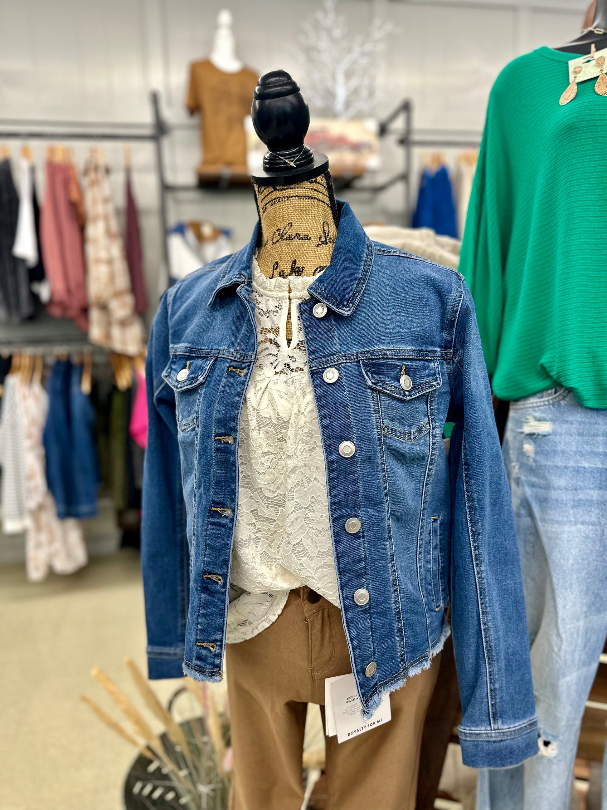Introducing The Erin - the perfect jean jacket for any occasion! With its versatile style and comfortable fit, this jacket will quickly become your go-to for everyday wear. Say goodbye to boring outerwear and hello to The Erin - your new best friend!