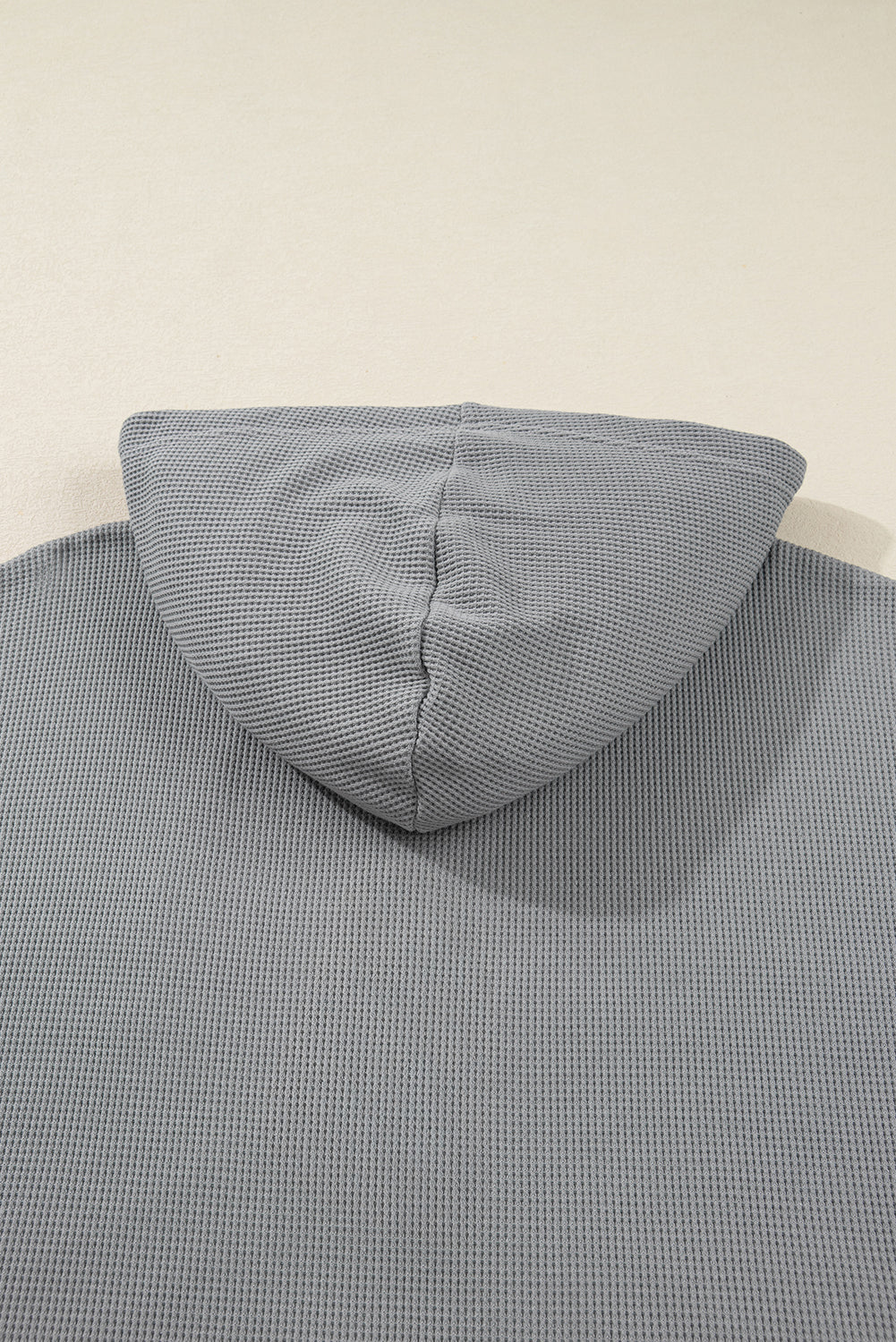 Meet The KiKi – your new cozy companion that's equal parts comfort and character. This plus-size henley hoodie features a charming gray mixed waffle knit patchwork design that adds visual interest to your everyday wardrobe. The relaxed fit and soft fabric make it perfect for lounging, running errands, or layering on cooler days. Whether you're sipping coffee at your favorite café or settling in for a relaxed weekend, The KiKi delivers warmth and style without trying too hard. A playful piece that proves comfort never goes out of style.