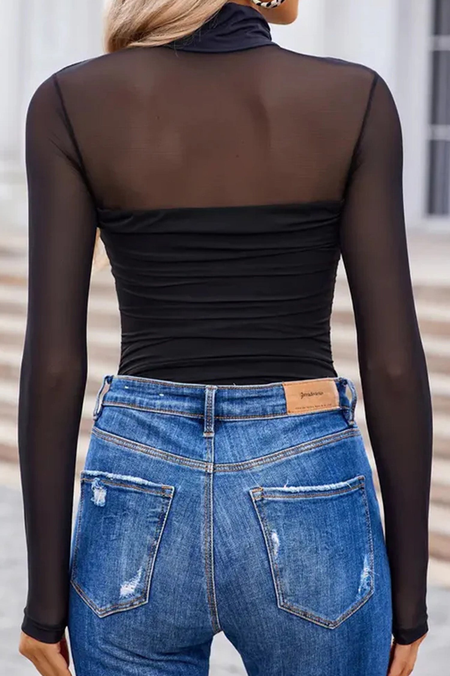 The Natalie is a modern, sophisticated top that combines sheer mesh with strategic patchwork detailing for an on-trend look. The high neckline and long sleeves offer coverage and polish, while the mesh elements add texture and visual depth. Versatile enough to layer under blazers or wear as a statement piece, this black top transitions seamlessly from day to evening. Perfect for those seeking contemporary style with an understated edge, The Natalie pairs beautifully with both casual and dressed-up pieces.