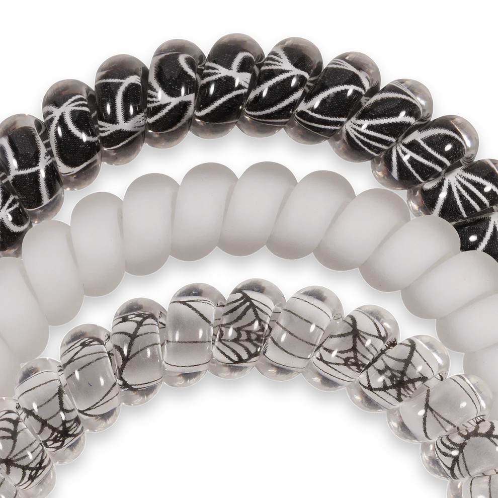 Webbed Hair Ties in Black and White offer a strong grip without damage, doubling as a chic wrist accessory when not in use. Your new favorite hair essentials all year round.