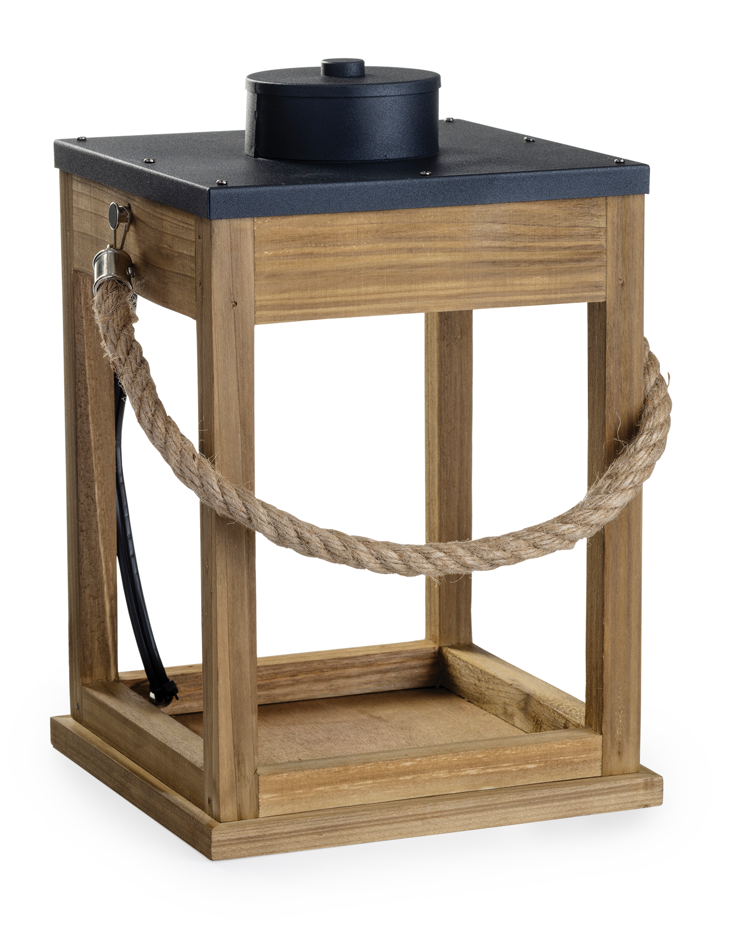 DESIGN: Give your home decor a handcrafted touch with this chestnut colored Wood & Rope Candle Warmer Lantern. The unique design of this lantern candle warmer lets you experience the cozy glow of your favorite scented candle, safely warmed from inside the lantern.